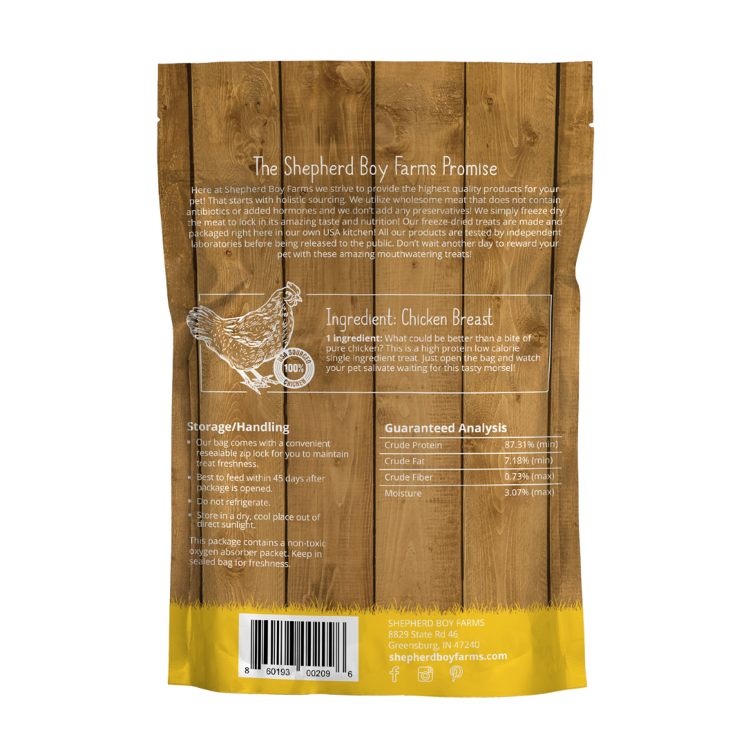All of our dog food, treats & goat milk are single-ingredient human-grade pet treats, containing only meat from USA-raised animals following USDA guidelines. There are no added hormones or antibiotics. The treats are freeze-dried to lock in the maximum amount of nutrients for the highest-quality product available.