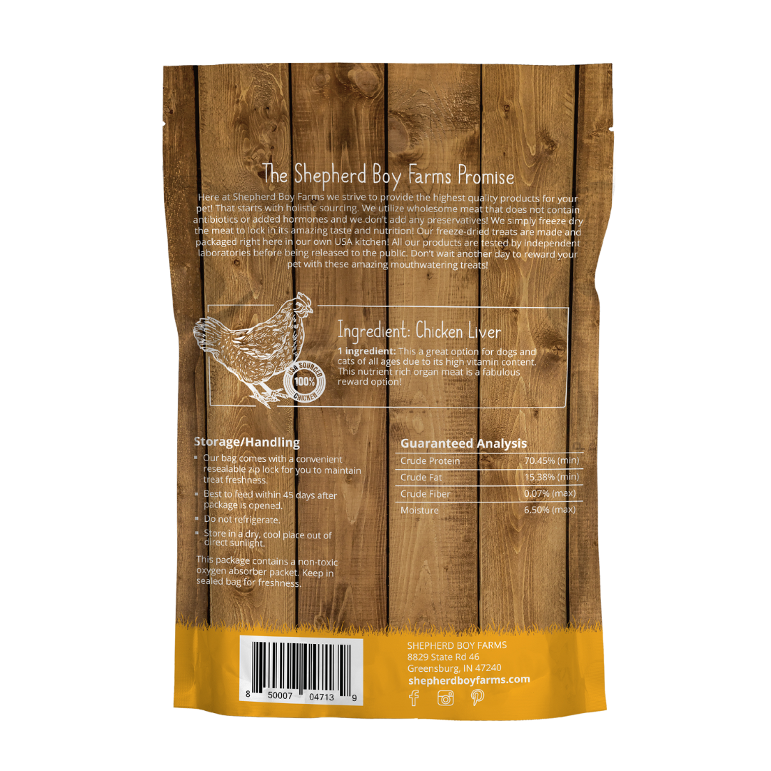 1 lb of our freeze-dried treats equals 5 lbs of non-freeze-dried treats, providing a concentrated nutritional value!